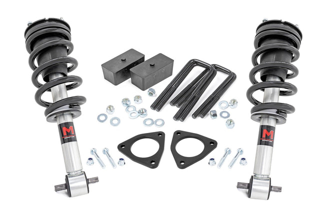 Lift Your Limits Without Breaking the Bank: Rough Country's 2.5-inch Suspension Lift Kit for Chevy Silverado or GMC Sierra 1500 pickups delivers off-road capability and clean street styling-without the high price tag. Designed for those who want more than a basic leveling kit, this system combines 2-inch lower strut extensions, strut spacers, and upgraded rear blocks for a true 2.5-inch lift-enough clearance to run up to a 285/70/17 tire with confidence.Preserve Factory Comfort with an Aggressive Stance: Maintain the smooth, factory-like ride you love while achieving a leveled front-to-rear look. Whether on the road or trail, this kit offers enhanced ground clearance with no compromise in handling or ride quality.Fully Configurable with Optional Strut Replacements: Choose the ride feel that suits your style-this kit is available with direct-fit replacement struts, including nitrogen-charged N3s or premium Vertex reservoir options. Whether you want a comfort-focused setup or performance-tuned damping, we've got you covered.Engineered for Strength, Built for Simplicity: Say goodbye to cast blocks-our upgraded 2-inch rear blocks are precision-crafted for durability and a secure, exact fit. With a fully bolt-on installation that requires no cutting, drilling, or strut compressor (excluding models equipped with lower stamped steel control arms), this kit installs quickly and easily in your own garage.Take on the Terrain with More Clearance and Control: Whether you're upgrading for style, clearance, or trail performance, Rough Country's 2.5-inch Lift Kit gives you the capability and stance your truck deserves-without the premium price.