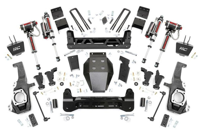 Ultimate Upgrade. Give your GM 2500HD/3500HD an unbeatable stance and better ride quality with Rough Country's 5-inch Lift Kit with Torsion Drop. This kit is a unique offering of suspension lifts, delivering the desired torsion drop look and ride you want while still offering unmatched ground clearance. The Torsion Drop brackets are designed to ensure that your vehicle's track width is not widened and allows you to maintain the factory feel of handling corners and turns. So take your everyday ride and make it one of a kind with our 5-inch Lift Kit with Torsion Drop!Premium Construction. This 5-Inch rugged lift kit is made of heavy-duty laser-cut steel components, powder-coated for a long-lasting finish. It includes replacement knuckles, 1/4" thick steel cross members for the front and rear, fabricated lift blocks, and 1/4" thick Torsion Drop Bar Brackets. You also get the option to configure with multiple shock options that we offer. This allows you to choose the shock series that best fits your needs! Ranging from our nitrogen-charged N3 shocks, to V2 monotube shocks, or our high-performance Vertex reservoir shocks, the power to choose is in your hands. This setup will give you a level stance and the ride height you need to run those larger tires with ease.Installation and Warranty. This kit is packed with all hardware needed for installation and includes full sway bar links, a durable, thick Skid Plate, and brake line relocation brackets. Although some minor cutting and drilling are required, there is no drilling or modifying of the differential, and no drivetrain or exhaust modifications are required. Rough Country's products are backed with a limited lifetime replacement warranty. This means that you have the security of knowing that Rough Country's products will work as they should, even after years of use.
