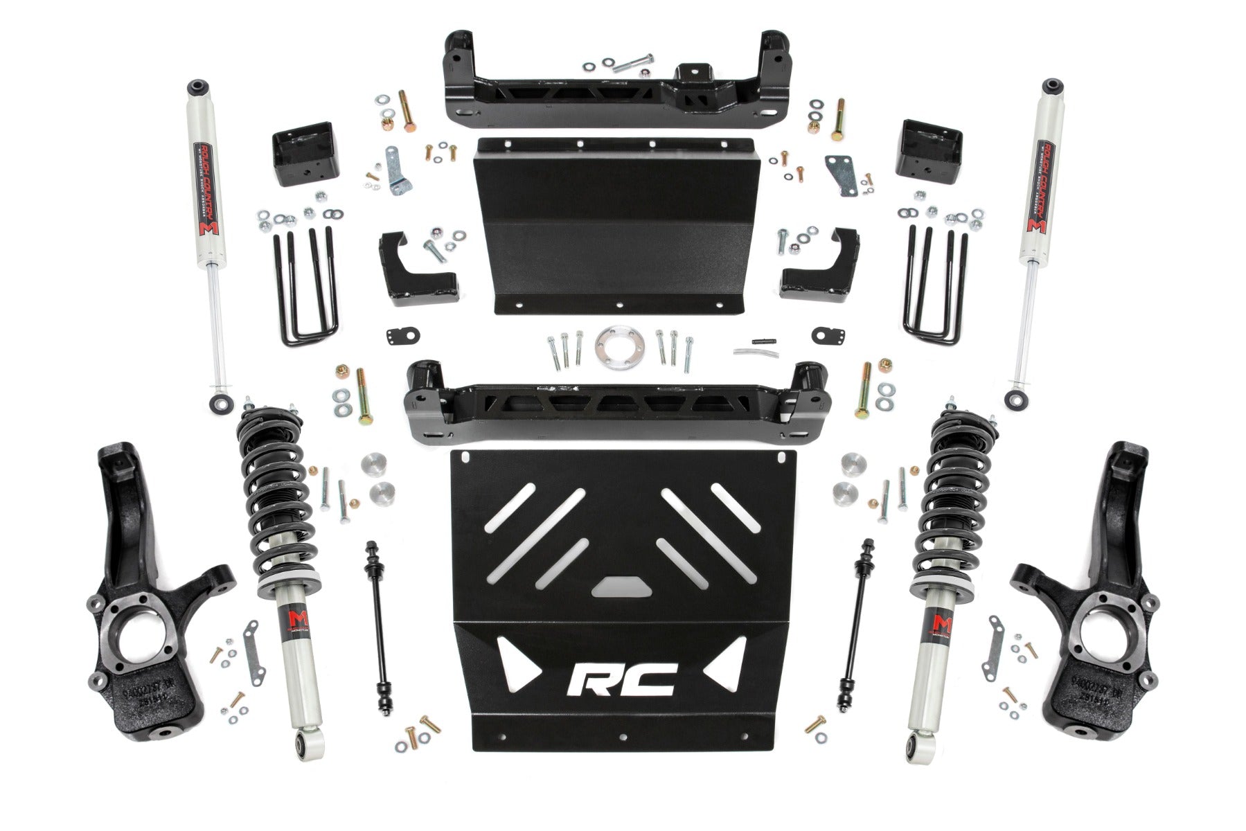 Elevate Your Second Generation Colorado or Canyon: Transform your mid-size truck into a true off-road beast with Rough Country's 6-Inch Lift Kit! Designed for both aggressive styling and top-tier performance, this kit includes everything you need to take your ride to the next level. Heavy-duty front and rear crossmembers keep your suspension secure, while a durable front skid plate with a laser-cut "RC" logo delivers bold styling and superior undercarriage protection. Precision-engineered lifted knuckles maintain OE geometry for smooth handling, and fabricated rear lift blocks provide unmatched strength and longevity compared to cast options.Take on Any Terrain with Confidence: This kit comes equipped with Rough Country's premium N3 shocks - designed for the perfect blend of off-road dominance and smooth highway performance. These 10-stage variable valving, high-pressure Nitrogen-charged shocks provide exceptional vibration dampening, thanks to a robust 18mm spring-loaded piston rod and a fast-cooling 54mm shock body built for durability. With up to 36kN of tensile strength, these shocks ensure long-lasting, reliable performance while featuring natural rubber bushings and a sleek metallic silver finish for a sharp, rugged look. Looking for even more high-performance handling? This kit is also available with Rough Country's M1 Monotube Shocks, offering superior heat dissipation and a consistent, responsive ride in extreme conditions.Built for Easy Installation: This lift kit is minimally invasive - no welding or strut disassembly required - so you can get back on the road or trail faster. The design retains the factory track width and ensures a smooth, factory-like ride for the best of both worlds. Backed by Rough Country's Lifetime Replacement Guarantee, this lift kit is built for performance, durability, and adventure!