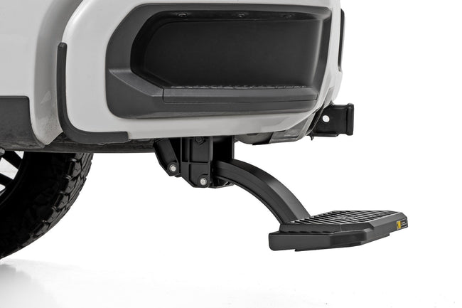 Tired of climbing up like you're scaling a wall just to reach your gear? The Rough Country Manual Bed Step is your answer for quick and easy access. With a simple tap of your foot, this step drops 5", giving you that extra boost to reach what you need without breaking a sweat. Whether you're tossing in tools or loading up camping gear, the Rough Country Bed Step has your back (and your knees).5-Inch Drop: Say goodbye to awkward stretches and hops; this step gives you a 5-inch drop, so reaching into your truck bed feels like second nature.Foot-Push Deployment: No need to fumble around with handles or levers. Just give it a gentle nudge with your foot, and the step is ready to roll, supporting up to 330 lbs!Wide and Secure: With a 6" wide, non-slip surface, the die-cast aluminum board keeps your footing solidΓÇöeven when your boots are muddy or it's pouring rain.Durable Die-Cast Aluminum: Built tough with lightweight yet super-strong die-cast aluminum, this step will withstand the roughest terrain and hardest working days.Easy Bolt-On Installation: No need to bust out the big tools or fumble with complicated installations. This step bolts right on for a quick and easy setup.Give your truck the upgrade it deserves with the Rough Country Manual Bed Step. Invest in a step that's built to last, and make accessing your truck bed easier than ever.