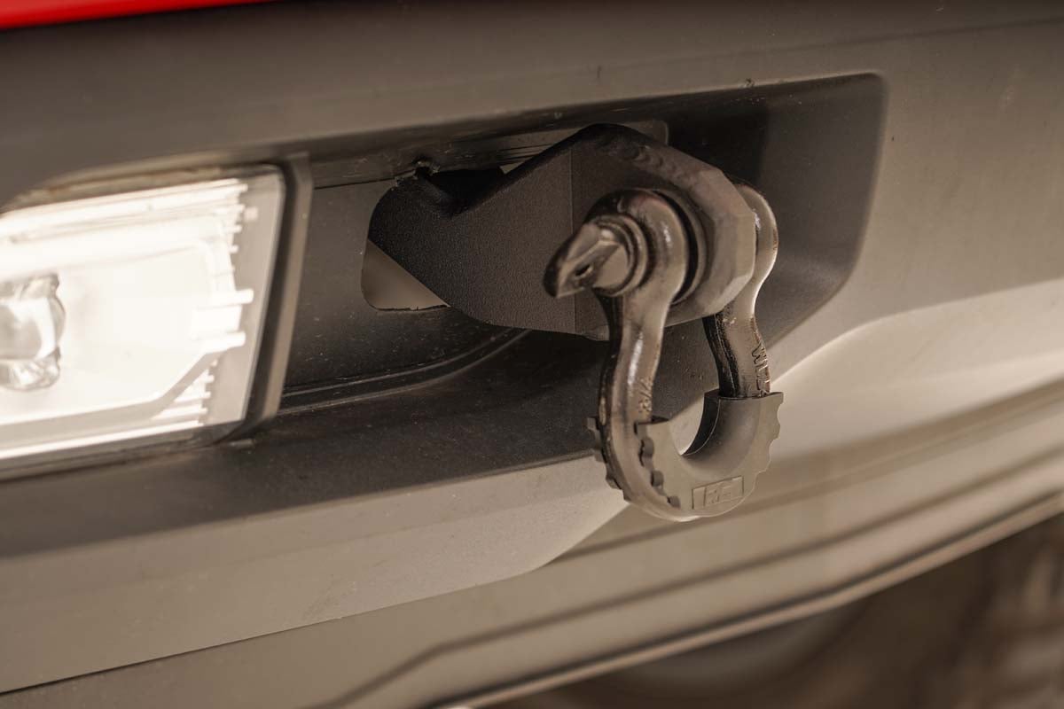 Featuring a 100% bolt-on installation process, this great-looking upgrade can be installed in a flash! Simply remove the factory tow hooks and install Rough CountryΓÇÖs Tow Hook to Shackle Conversion Kit into the factory tow hook mounting points and youΓÇÖre ready to roll! Best of all, each mount is covered by Rough CountryΓÇÖs Lifetime Replacement Guarantee!