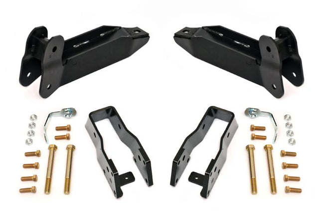 Our new Dodge 2500/3500 Control Arm Drop Bracket System improves driveline geometry. By utilizing a set of beefy drop brackets we've eliminated the steep mounting angle often seen on 5in and larger kits. By mounting your stock arms to the reduced angle provided by our Drop Bracket System, you'll gain better ride quality and better caster angle for increased drivability.