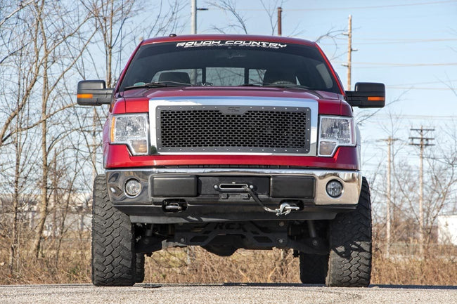 Give the front-end of your F-150 a unique look with Rough CountryΓÇÖs Mesh Grille kit. This grille replacement kit swaps out your stock grille with the eye-catching, head-turning good looks of this aftermarket upgrade. With a unique, laser-cut mesh pattern surrounded by stylish, stainless steel button-head bolts, this grill gives your truck a more menacing look thatΓÇÖs sure to draw attention. Each kit is powder coated black to resist corrosion and give a long lifespan of good looks.