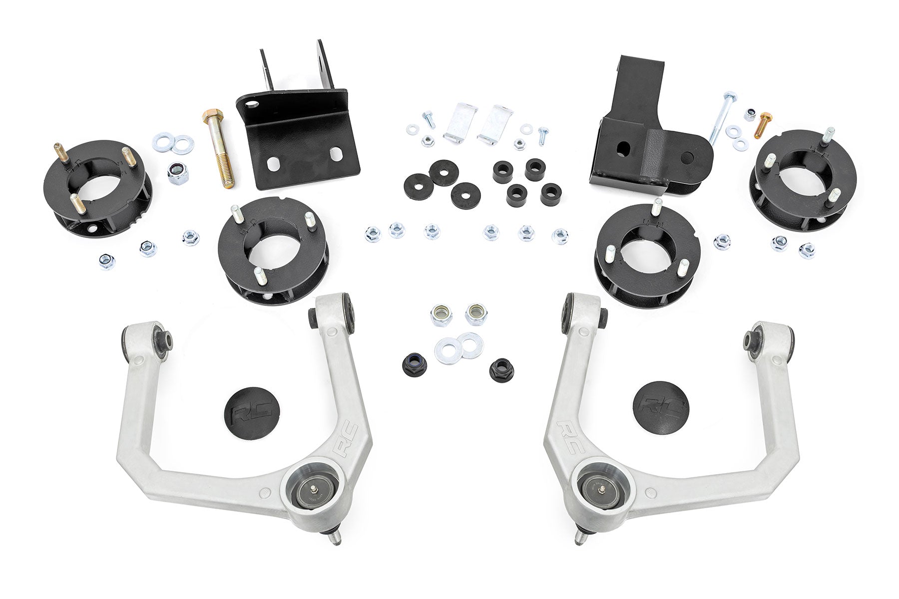 Upgraded Performance. Looking for a way to take your Sasquatch-equipped Bronco to new heights? Rough Country's 2.5 Inch Lift Kit is just what you need! This lift kit offers a clean, level look from front to rear and is designed to maintain ride quality, handling and performance while giving you room for larger tires. Adding even more durability, we include our quality upper strut spacers for uncompromised strength. Plus, this kit improves off-road capability without sacrificing the comfort and performance you've come to expect from your Bronco. Give your Bronco the lift it deserves with Rough Country's 2.5 Inch Lift Kit!Premium Construction. If you're looking for a quality 2.5-inch lift kit for your Ford Bronco, our 2.5 Inch Lift Kit is a perfect choice. Forged from high-quality, lightweight aluminum, our Upper Control Arms improve ball joint angle and correct suspension geometry. These arms are designed to promote optimum angles in the lifted position by keeping the ball joint at the proper angles. This design reduces stress, wear and tear on the ball joint while allowing for a greater range of motion. Plus, they're equipped with greaseable high-angle ball joints. So, whether you're hitting the trails or just cruising down the street, you can rest assured that your Bronco will be performing at its best.Easy Installation. Rough Country's 2.5 Lift Kit is easy to install and includes all necessary hardware, making it a great option for those who want to do the job themselves. With an estimated installation time of 3-5 hours, this kit is a bolt-on install that can be completed at home.Limited Lifetime Replacement Warranty. Rough Country's products are backed with a limited lifetime replacement warranty towards manufacturer defects. As such, the product is protected from structural and workmanship damage after the date of purchase. With our industry-leading warranty give yourself peace of mind when using Rough Country's products!