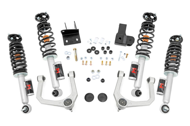 Improved Ground Clearance and Ride Quality: The Ford Bronco is back and ready for adventure! Rough CountryΓÇÖs 3.5-inch Suspension Lift Kit gives your Ford Bronco a bold, aggressive stance while improving ground clearance for larger tires. This kit eliminates the factory nose-down look, ensuring a level, commanding presence on and off the road - all without sacrificing ride quality.Innovative Design and High-Performance Construction: Built for durability and performance, this lift kit features lightweight yet strong aluminum upper control arms that optimize ball joint angles and suspension geometry. Greaseable high-angle ball joints provide smoother operation and longevity, while differential spacers help maintain proper CV angles. The heavy-duty upper strut spacers add uncompromised strength, ensuring reliable lift height. Completing the system, the rear track bar and brake line relocation brackets retain factory-like suspension geometry - allowing clearance for 35" tires with no additional modifications. For those looking to take performance even further, this kit offers an optional upgrade to Rough CountryΓÇÖs premium M1R reservoir struts, providing superior dampening and ride control for the toughest terrain.Hassle-Free Installation: Designed for efficiency, this kit can be installed at home with basic tools. While minor cutting and a strut compressor are required, the entire process takes approximately 3-5 hours for a straightforward, bolt-on upgrade.Limited Lifetime Replacement Warranty: Rough Country backs this 3.5" Suspension Lift Kit with a limited lifetime replacement warranty against manufacturer defects. Drive with confidence knowing your suspension is protected for the long haul with industry-leading durability and reliability.