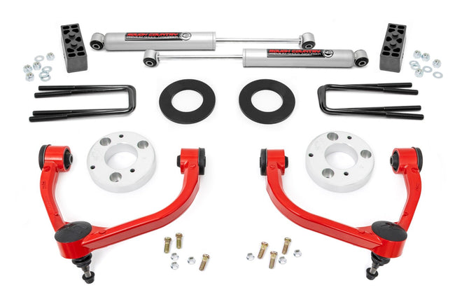 Upgrade your truck with an unbeatable combination of aggressive good looks, increased ground clearance, and premium components - all at an incredible value. Designed specifically for thirteenth-generation F-150 models, this kit delivers a hassle-free installation and enhanced performance both on and off the road.Premium Forged Aluminum Control Arms for Maximum Durability: This kit includes high-quality forged aluminum upper control arms, engineered for superior strength and easier alignment adjustments. Built with heavy-duty rubber bushings, these arms ensure long-lasting reliability while maintaining factory-like geometry. By keeping ball joints at optimum angles, they reduce stress and wear, giving your suspension an extended lifespan.Fully Configurable with All Shock/Strut Options: Customize your ride with the perfect suspension setup! Choose from nitrogen-charged N3 shocks for a balanced ride or upgrade to premium Vertex reservoir shocks for maximum performance and adjustability. Whether you're looking for comfort, off-road capability, or high-end damping control, this kit gives you full flexibility to dial in your ride quality.Balanced Stance with Increased Ground Clearance: This 3-inch lift kit levels the front and rear of your truck, eliminating factory rake and giving your F-150 a clean, aggressive stance. The included rear blocks provide additional lift while maintaining a factory-like ride. With this setup, your truck gets ample clearance for up to 34-inch tires without sacrificing drivability.Simple, Bolt-On Installation: Designed for easy installation, this kit features a 100% bolt-on process that can be completed with common tools in a home garage. No need for cutting or drilling - just a straightforward, stress-free upgrade. Plus, if you ever want to return your truck to stock, this kit allows for a full reversal with ease.Built to Last: With its durable construction and premium components, this lift kit is built to handle whatever the road throws your way. Plus, it comes backed by Rough Country's Limited Lifetime Replacement Warranty, ensuring long-term confidence in your investment.