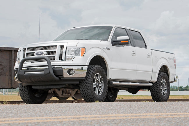 Upgrade your truck with an unbeatable combination of aggressive good looks, increased ground clearance, and premium components - all at an incredible value. Designed specifically for the twelfth-generation F-150 models, this kit delivers a hassle-free installation and enhanced performance both on and off the road.Premium Forged Aluminum Control Arms for Maximum Durability: This kit includes high-quality forged aluminum upper control arms, engineered for superior strength and easier alignment adjustments. Built with heavy-duty rubber bushings, these arms ensure long-lasting reliability while maintaining factory-like geometry. By keeping ball joints at optimum angles, they reduce stress and wear, giving your suspension an extended lifespan. Also available with a bold red powder-coated finish for added corrosion resistance and a custom look.Fully Configurable with Shock/Strut Options: Customize your ride with the perfect suspension setup! Choose from nitrogen-charged N3 shocks for a balanced ride or upgrade to premium M1 monotube shocks for maximum performance and adjustability. Whether you're looking for comfort, off-road capability, or high-end damping control, this kit gives you full flexibility to dial in your ride quality.Balanced Stance with Increased Ground Clearance: This 3-inch lift kit levels the front and rear of your truck, eliminating factory rake and giving your F-150 a clean, aggressive stance. The included rear blocks provide additional lift while maintaining a factory-like ride. With this setup, your truck gets ample clearance for up to 34-inch tires without sacrificing drivability.Simple, Bolt-On Installation: Designed for easy installation, this kit features a 100% bolt-on process that can be completed with common tools in a home garage. No need for cutting or drilling - just a straightforward, stress-free upgrade. Plus, if you ever want to return your truck to stock, this kit allows for a full reversal with ease.Built to Last: With its durable construction and premium components, this lift kit is built to handle whatever the road throws your way. Plus, it comes backed by Rough Country's Limited Lifetime Replacement Warranty, ensuring long-term confidence in your investment.