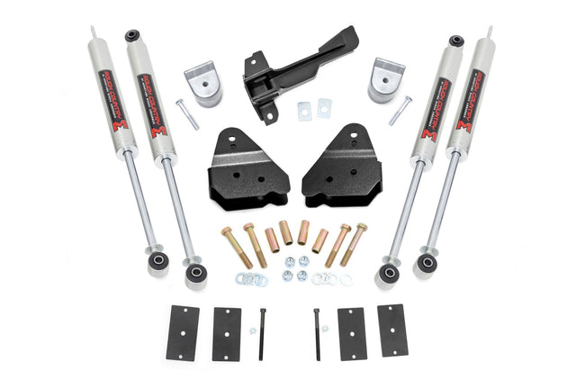Durable Components.This kit features a set of front, lifted coil springs spacers allowing you to gain additional ride height without sacrificing ride quality or performance. A set of radius arm drop brackets as well as a track bar drop bracket is provided to keep everything at optimum angles for a factory-like ride, even after lifting. A set of Rough Country's premium V2 monotube shocks are also included. The V2 Monotube Shock Absorber is more than an upgrade - itΓÇÖs a true performance shock. Each shock features a T6061 brushed aluminum body with black anodized accents giving it a striking visual appearance that also dissipates heat faster than other materials. The internal 46mm high-flow piston offers countless years of durability.\