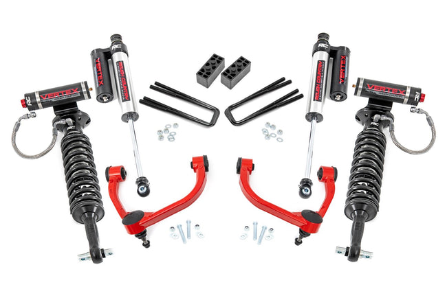 Upgrade your truck with an unbeatable combination of aggressive good looks, increased ground clearance, and premium components - all at an incredible value. Designed specifically for thirteenth-generation F-150 models, this kit delivers a hassle-free installation and enhanced performance both on and off the road.Premium Forged Aluminum Control Arms for Maximum Durability: This kit includes high-quality forged aluminum upper control arms, engineered for superior strength and easier alignment adjustments. Built with heavy-duty rubber bushings, these arms ensure long-lasting reliability while maintaining factory-like geometry. By keeping ball joints at optimum angles, they reduce stress and wear, giving your suspension an extended lifespan.Fully Configurable with All Shock/Strut Options: Customize your ride with the perfect suspension setup! Choose from nitrogen-charged N3 shocks for a balanced ride or upgrade to premium Vertex reservoir shocks for maximum performance and adjustability. Whether you're looking for comfort, off-road capability, or high-end damping control, this kit gives you full flexibility to dial in your ride quality.Balanced Stance with Increased Ground Clearance: This 3-inch lift kit levels the front and rear of your truck, eliminating factory rake and giving your F-150 a clean, aggressive stance. The included rear blocks provide additional lift while maintaining a factory-like ride. With this setup, your truck gets ample clearance for up to 34-inch tires without sacrificing drivability.Simple, Bolt-On Installation: Designed for easy installation, this kit features a 100% bolt-on process that can be completed with common tools in a home garage. No need for cutting or drilling - just a straightforward, stress-free upgrade. Plus, if you ever want to return your truck to stock, this kit allows for a full reversal with ease.Built to Last: With its durable construction and premium components, this lift kit is built to handle whatever the road throws your way. Plus, it comes backed by Rough Country's Limited Lifetime Replacement Warranty, ensuring long-term confidence in your investment.
