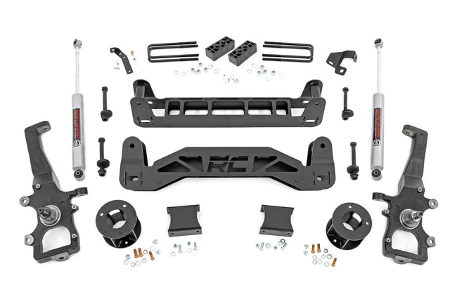 Transform your 2004-2008 Ford F-150 2WD with Rough Country's 4-inch Suspension Lift, giving it an aggressive new look and boosting off-road performance like never before. This all-inclusive kit is engineered to elevate your Ford, providing the perfect balance of strength and style on any trail.Achieve Enhanced Ride Height and Stability: With durable lifted knuckles and strut spacers, you'll gain the ride height needed to run up to 35-inch tires with proper wheel backspacing, all while maintaining Track Width Consistency for improved handling and stability.Upgrade Your Vehicle's Performance: This kit includes Cam Bolts, Brackets, Sway-Bar Drop Brackets, and Brake Line Brackets, ensuring all components stay at optimal angles for a factory-like ride. The 1/4-inch thick plate steel front and rear crossmember enhances your truck's strength and gives it a bold, stylish appearance.Includes Rough Country's N3 Rear Shocks: This kit comes complete with Rough Country's N3 rear shocks for enhanced ride quality and improved suspension performance. These premium shocks are engineered to deliver superior damping, increased stability, and all-terrain comfort, making your F-150 ready for any adventure right out of the box.Enjoy Peace of Mind: Backed by Rough Country's Limited Lifetime Replacement Warranty, you can hit the trails with confidence, knowing that your investment is covered for the long haul.