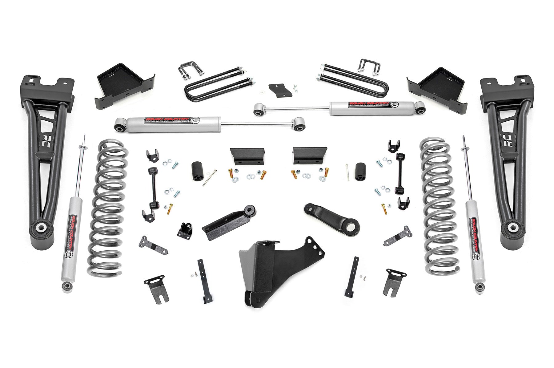 Superior Ride Quality. Take your fifth-generation Ford Super Duty to new heights with Rough Country's 6-inch Radius Arm Drop Suspension Lift! This all-inclusive kit comes with everything you need for a total transformation of your truck. Run up to 37in tires while preserving the smooth, factory ride quality with this impressive upgrade.\