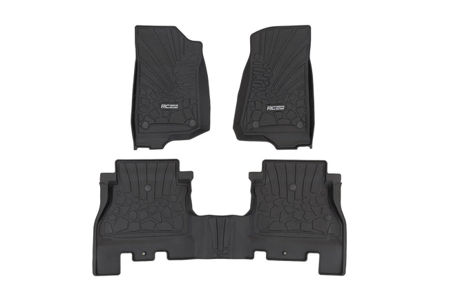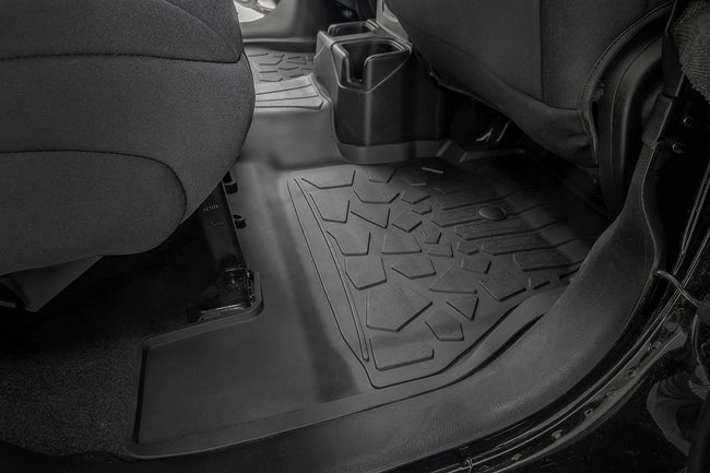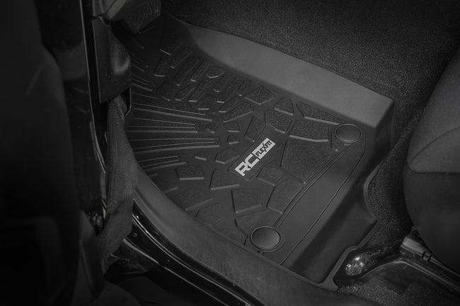 Stock floor mats just don't cut it for adventurers. They get trashed by mud, don't hold up to spills, and leave your carpets a mess. Give your ride the all-weather protection it deserves with Rough Country's Flex-Fit Floor Mats, the perfect solution for keeping your vehicle clean and protected.\