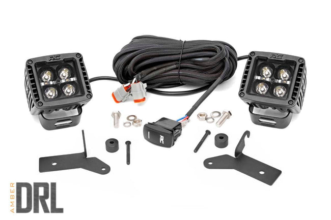 LED Light Kit | Hinge Mount | 2" Black Pair | Amber DRL | Jeep Gladiator JT/Wrangler JL (18-25)