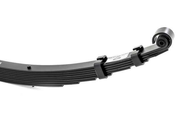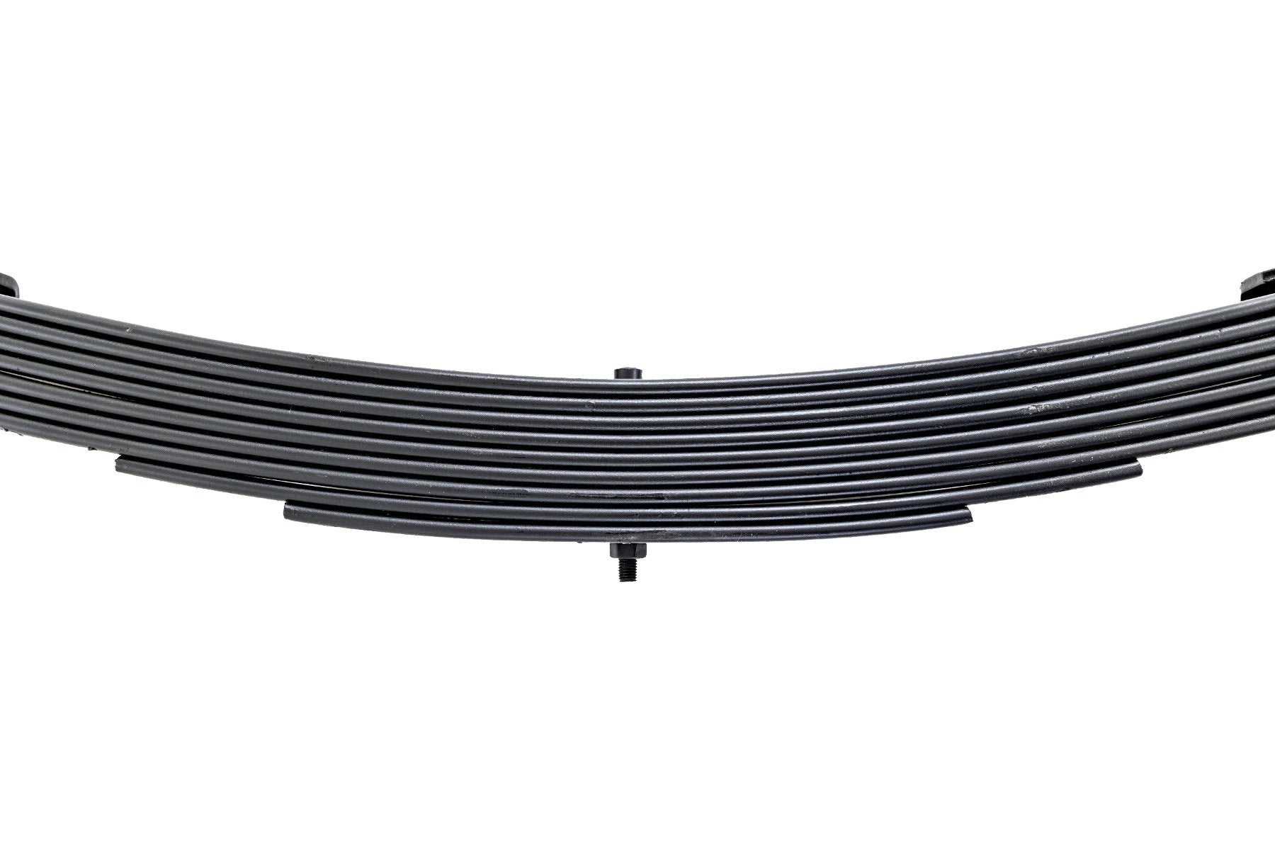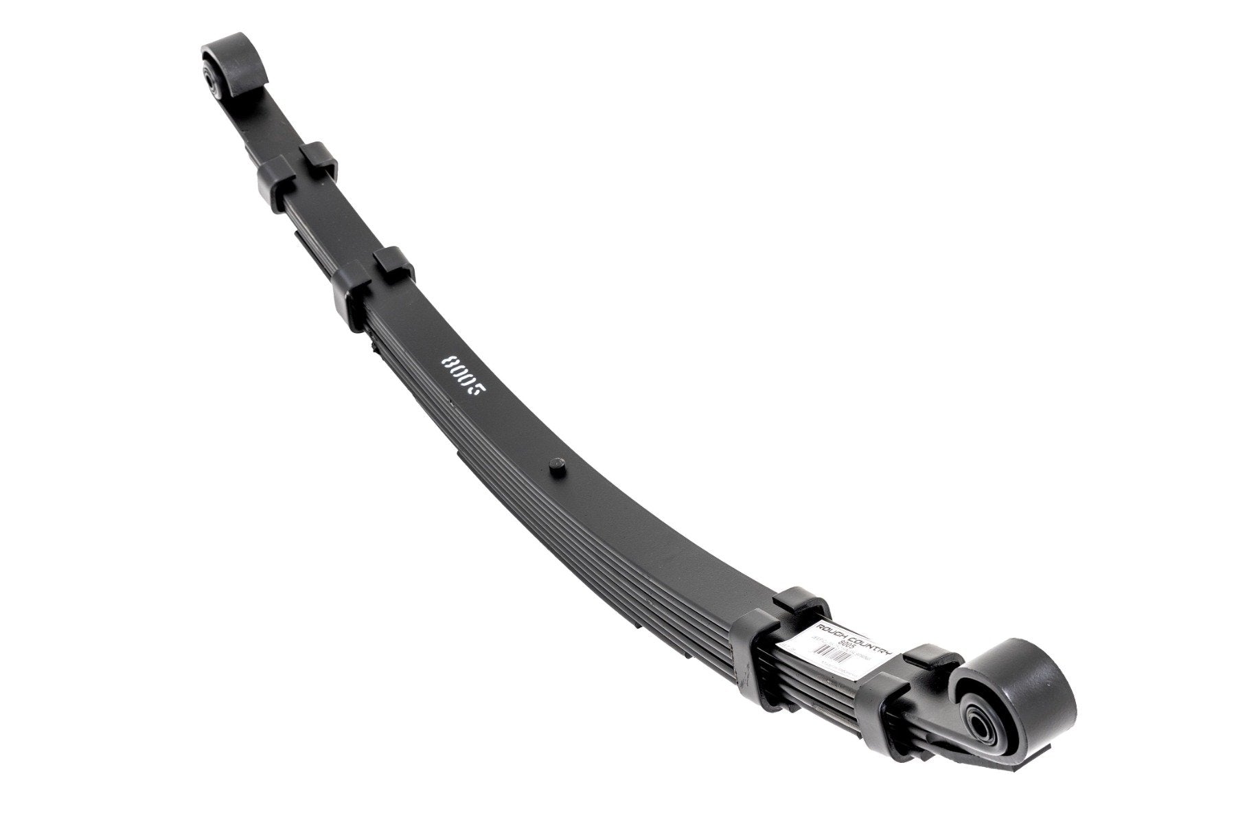 Durable and Off-Road Ready. Rough Country's Replacement Leaf Springs are designed to tackle any terrain that they are faced with. Featuring a multi-leaf design and spring pads this reduces the friction and maximizes comfort. Each leaf pack utilizes tapered leaves for improved flexibility at their ends. \