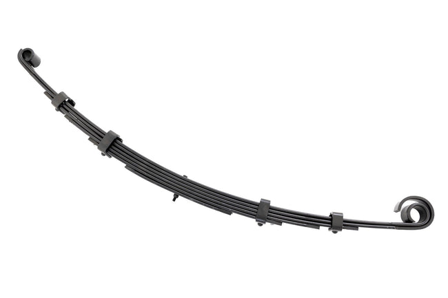 Durable and Off-Road Ready. Rough Country's Replacement Leaf Springs are designed to tackle any terrain that they are faced with. Featuring a multi-leaf design and spring pads this reduces the friction and maximizes comfort. Each leaf pack utilizes tapered leaves for improved flexibility at their ends. \