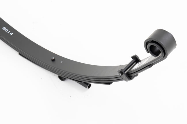 Durable and Off-Road Ready. Rough Country's Replacement Leaf Springs are designed to tackle any terrain that they are faced with. Featuring a multi-leaf design and spring pads this reduces the friction and maximizes comfort. Each leaf pack utilizes tapered leaves for improved flexibility at their ends. \