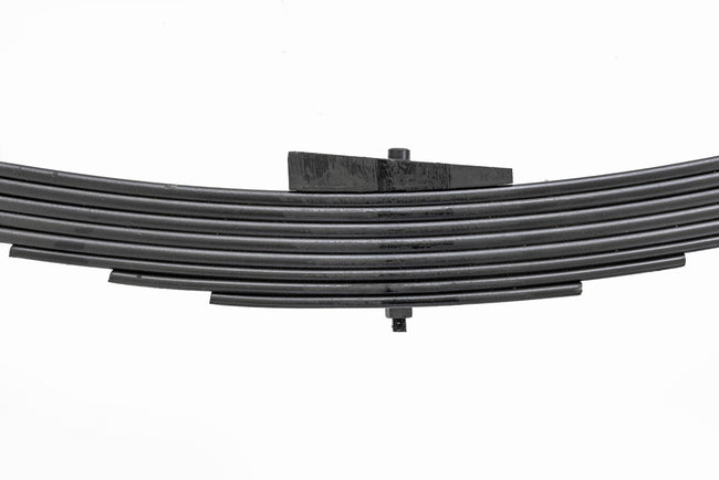 Durable and Off-Road Ready. Rough Country's Replacement Leaf Springs are designed to tackle any terrain that they are faced with. Featuring a multi-leaf design and spring pads this reduces the friction and maximizes comfort. Each leaf pack utilizes tapered leaves for improved flexibility at their ends. \