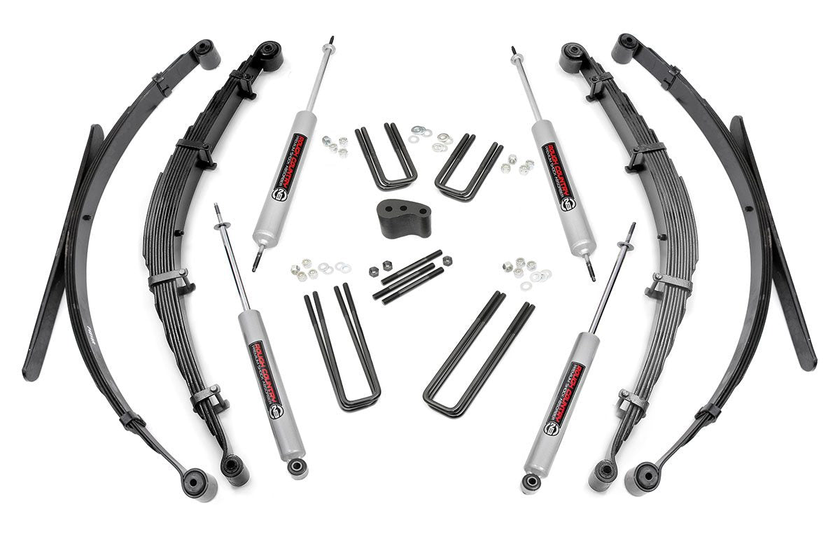 Give your 77-79 Ford Super Duty an impressive upgrade, front to back with Rough Country’s 4" Ford Suspension Lift Kit! This easy-to-install lift kit raises increases your ground clearance to avoid any obstacles and provides a better-than-stock look that gives an improved ride height and more aggressive appearance.\