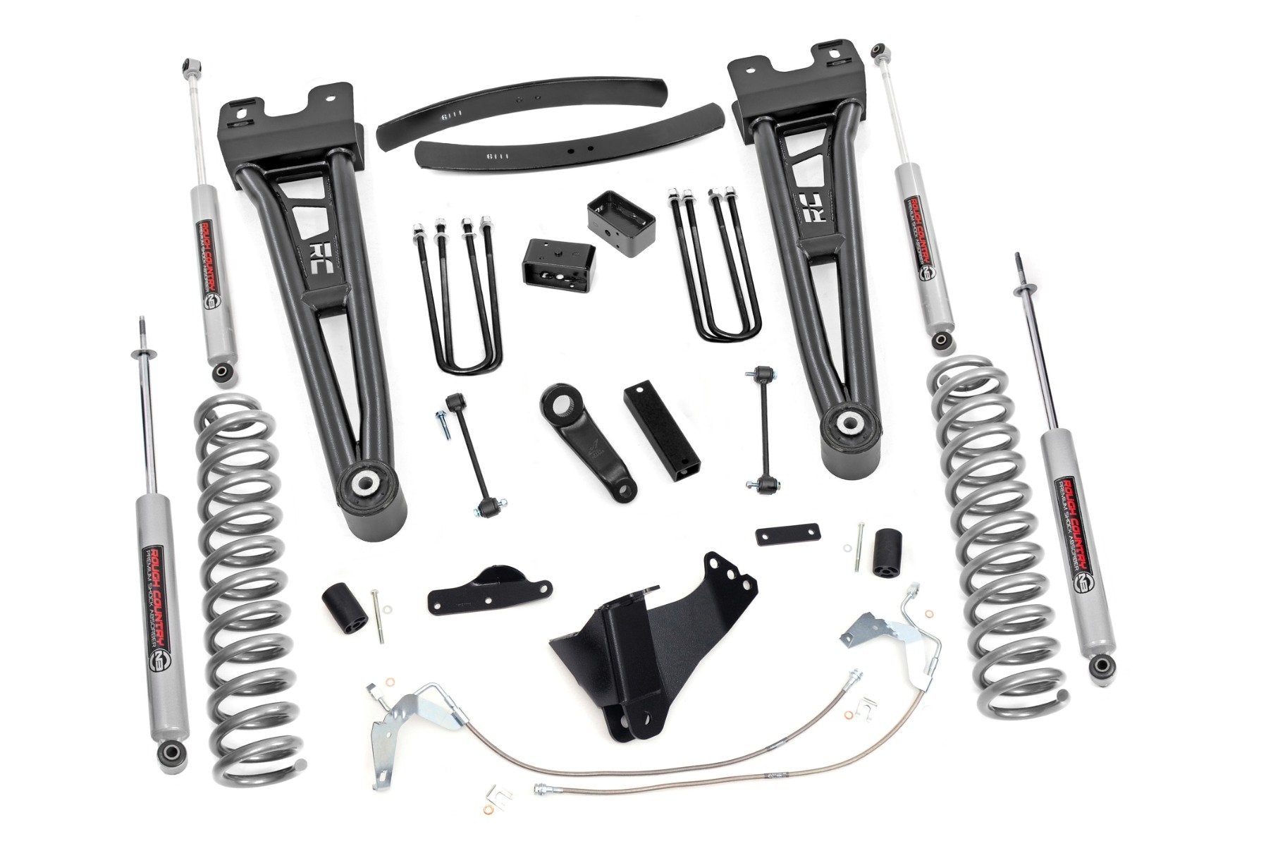 Compliment your 08-10 Ford F-250/350's aggressive, good looks with Rough Country's 6-inch Radius Arm Lift Kit. Rough Country's 6-inch Lift Kit was engineered to retain the F-250/350's impressive factory specs while bumping up performance and durability where it's needed most. The result is an aggressive, lifted beast with a mean profile and balanced on and off-road ride quality.\