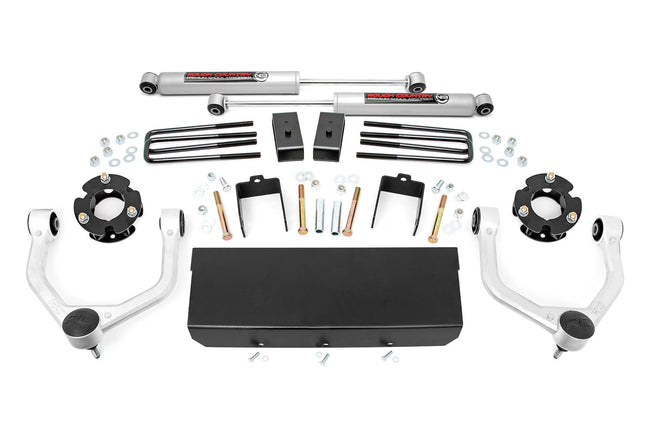 Rough Country's 3in Bolt-On Kit offers easy installation and aggressive good looks at an incredible value. Take your truck to new heights with this excellent option for Nissan Titan XD pickups.This kit features a set of high-quality, tubular Upper Control Arms designed to make alignment adjustments easier and durable rubber bushings. These arms are designed to promote a factory-like geometry by keeping the ball joint at optimum angles after lifting. This design allows for an improved, greater range of motion from the ball-joint, with less stress, wear and tear.Also included are a set of durable strut spacers and fabricated rear blocks to provide lift height from front to rear. Once installed, this kit gives your truck plenty of ride height for up to 33in tires while offering a clean, level look from front to rear.This all-inclusive kit comes with everything you need, and installation is a piece of cake compared to other kits on the market! Featuring a 100% bolt-on installation process that requires zero cutting or drilling, this kit can be installed using common tools in a home garage, and allows the truck to be returned to stock at any time if so desired. Best of all this kit features Rough CountryΓÇÖs Lifetime Replacement Warranty.\