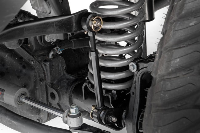 Maximize Flex, Maintain Control: Unlock your Jeep's off-road potential with quick disconnect sway bar links designed for 3.5-6" lifted setups. Just pull the pin to gain full articulation, then reconnect for stable, responsive on-road handling.Trail-Ready. Daily-Driven: These links fold up and secure safely out of the way when disconnected, no special tools, no hassle. Adjustable threaded ends ensure a precise fit, while greaseable heim joints deliver smooth, long-lasting performance.Built to Last: Engineered for lifted rigs and backed by a three-year warranty, this kit is ready to take on the trail and the commute with confidence.