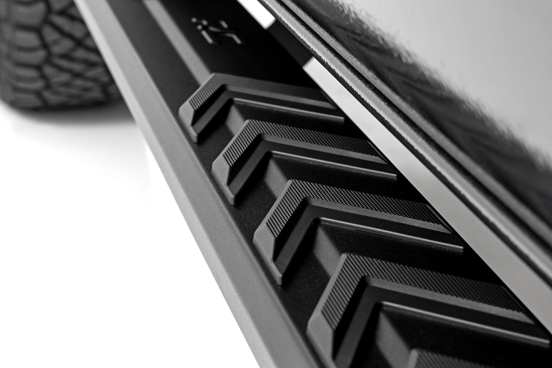 Ease of Access: Step into your vehicle with confidence using Rough Country's BA2 Running Board Side Steps. Designed for both form and function, these heavy-duty steel side steps offer a wide 5-inch stepping area, providing a secure and stable footing. A must-have for lifted applications, these steps enhance your vehicle's accessibility while delivering a rugged, off-road-ready look.Heavy-Duty Construction: Built to last, Rough Country's BA2 Running Board Side Steps feature a durable steel construction with a textured powder-coated finish for superior corrosion resistance. The integrated nonslip stepping surface ensures maximum traction, even in wet or muddy conditions. Engineered to support up to 500 lbs., these steps are as strong as they are stylish.Hassle-Free Installation: Get back on the road quickly with a no-drill, bolt-on installation. Designed for a precision fit, these running boards install easily using standard hand tools in approximately 1-2 hours. No cutting, drilling, or modifications required - just a seamless upgrade for your truck or SUV.Built for Lifted Rides: Whether you're driving a lifted truck or SUV, these side steps provide a sleek, functional upgrade that complements your vehicle's rugged stance. Their aggressive design enhances both style and accessibility, making them the perfect addition for off-road enthusiasts and daily drivers alike.5-Year Limited Warranty: Rough Country backs these BA2 Running Board Side Steps with a 5-year limited warranty, protecting against structural and workmanship defects. Drive with confidence knowing your investment is covered for years to come.