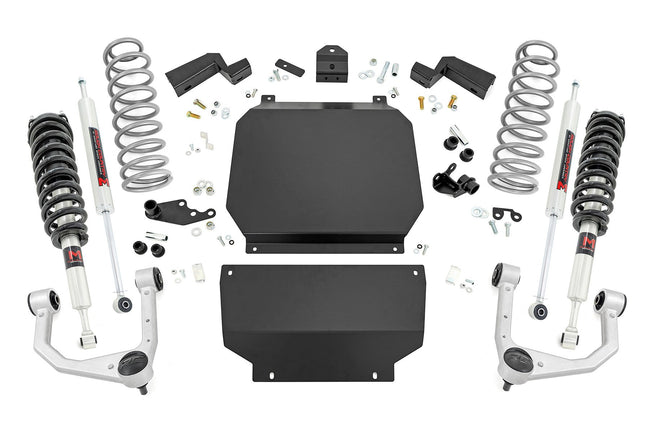 Innovative Design. Rough CountryΓÇÖs 3.5-inch Bolt-On Kit features a set of high-quality, Forged Aluminum Upper Control Arms designed to make alignment adjustments easier and durable rubber bushings. These arms are designed to promote a factory-like geometry by keeping the ball joint at optimum angles after lifting. This design allows for an improved, greater range of motion from the ball joint, with less stress, wear and tear. Each unit is shipped complete ensuring that all components needed for installation are included.\