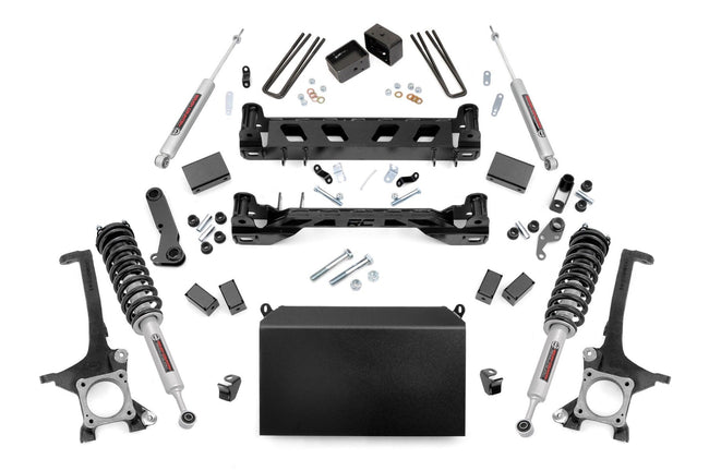 Take your Toyota Tundra to the next level with Rough Country's 4.5in Suspension Lift for 07 & up models. With heavy-duty components and a high-clearance design, this kit offers aggressive looks, unparalleled off-road performance, and enough ride height to run up to 35in tires.Instantly gain a meaner lifted and level stance with high-quality equipment that's made to handle the hazards of high-performance while withstanding the test of time. A set of durable lifted knuckles, high-clearance front and rear crossmembers, N3 loaded struts, and long-lasting, fabricated rear blocks give you plenty of lift and uncompromised toughness.This all-inclusive kit features everything you need to take your Tundra off the tread and through the trenches; featuring steering stops, brake line brackets, differential drop brackets, sway-bar drop brackets, and anything else one would need to keep everything working at optimum angles after lifting. Best of all, you can get up and running with Rough Country's 4.5in Toyota Tundra Lift at a price that won't break the bank!
