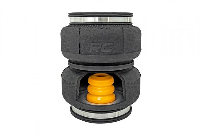 Ideal Leveling: Is your truck your workhorse? The main attraction of a pickup is the ability to haul and tow as needed. However, due to the weight in the bed or the condition of the rear leaf springs, your vehicle may become un-level under load. At Rough Country, we've designed a solution to eliminate these concerns. Introducing Rough Country's Rear Air Spring Kit.Heavy-Duty Construction: Rough Country's Rear Air Spring Kit includes two high-quality, double convoluted air bags, reinforced with durable powder-coated steel brackets and DOT-approved airlines. Whether you're towing a trailer or hauling heavy loads, this kit helps ensure your vehicle remains level, alleviating the strain on your trailer's tongue weight. The kit features 1/4" push-to-connect air fittings for easy installation, along with all necessary bracketry for a secure fit. Rough Country's Air Spring Kit supports up to 5,000 lbs of load, minimizing sway and preventing bottoming out while braking and steering.Easy Installation: Quick and simple setup for immediate use. Rough Country's kit can be installed at home with standard tools in just 5-6 hours, ensuring minimal downtime and fast, hassle-free installation.Onboard Air Compressor and Wireless Controller: For added convenience, Rough Country offers an optional onboard air compressor and wireless controller to easily adjust your air spring kit on the go. Control air pressure at the push of a button from the comfort of your vehicle.Reliable Warranty Coverage: Rough Country's Rear Air Spring Kit includes a limited lifetime warranty on the air springs and a two-year replacement warranty on the compressor, offering lasting protection against manufacturer defects. This industry-leading coverage ensures confidence in both quality and durability, so you can count on Rough Country to keep your truck performing at its best.