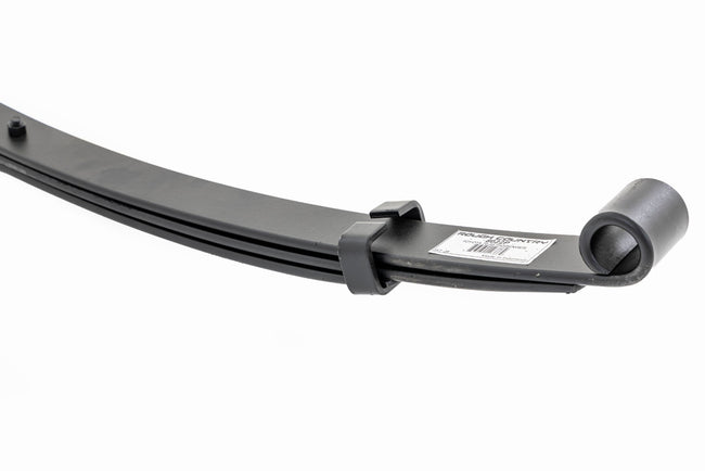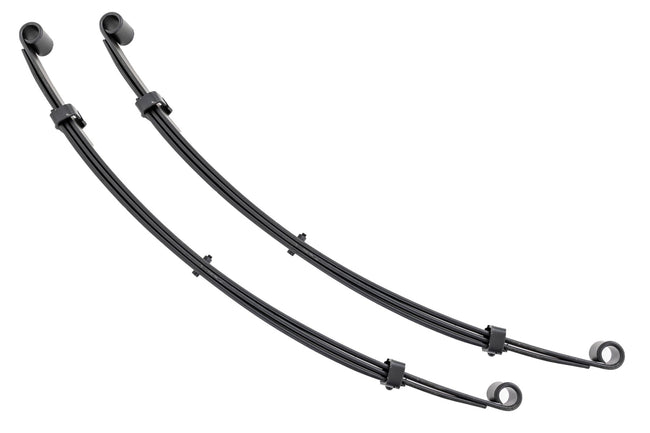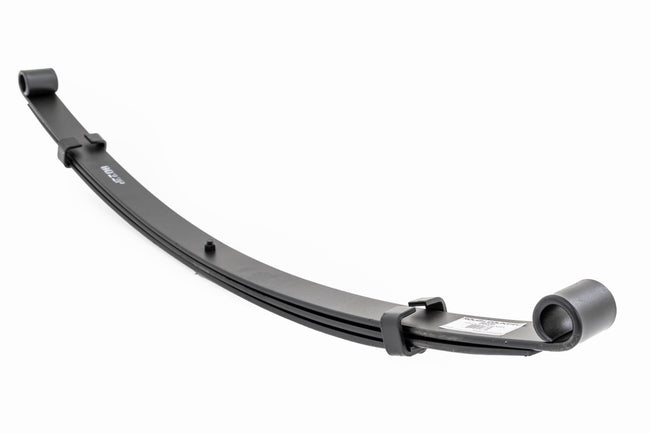 Durable and Off-Road Ready. Rough Country's Replacement Leaf Springs are designed to tackle any terrain that they are faced with. Featuring a multi-leaf design and spring pads this reduces the friction and maximizes comfort. Each leaf pack utilizes tapered leaves for improved flexibility at their ends. \